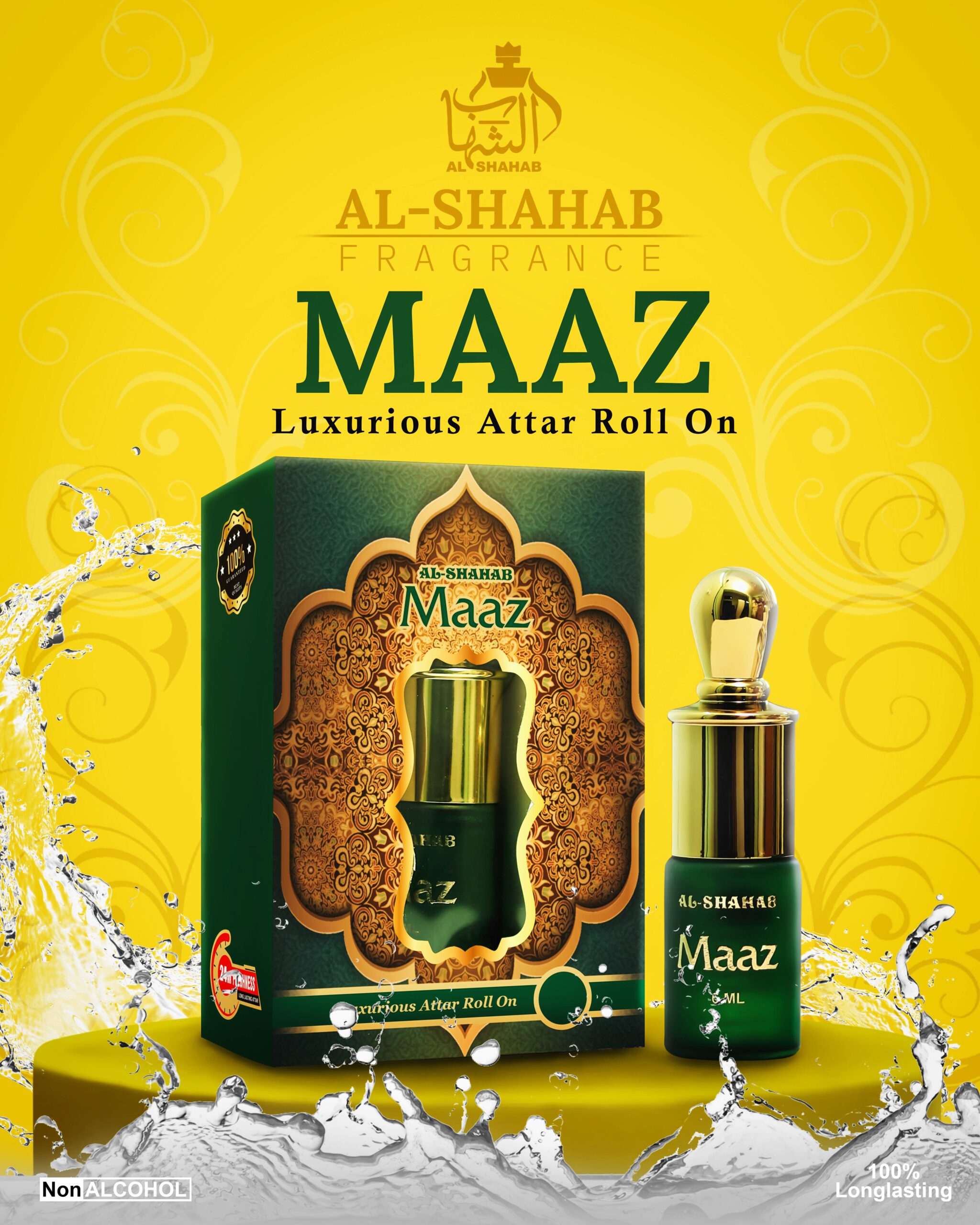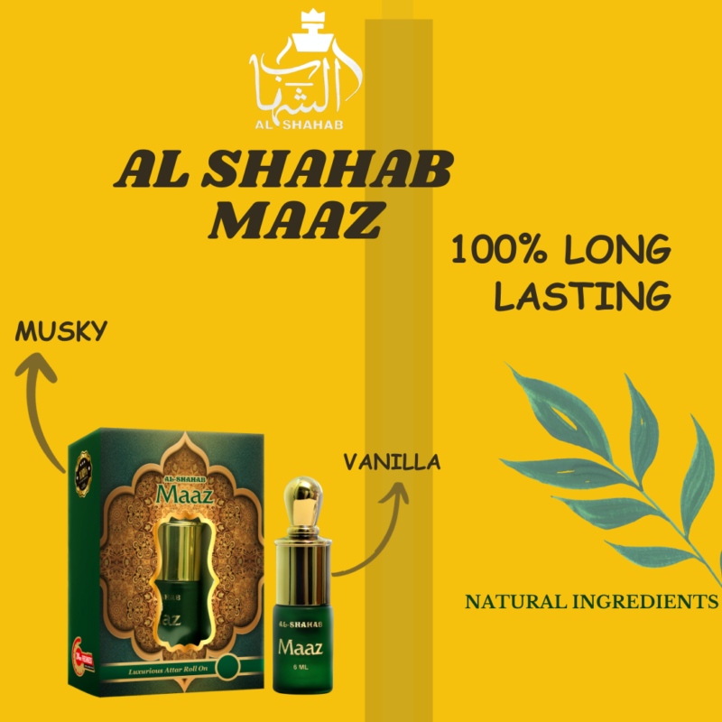 AL-SHAHAB MAAZ Luxurious Attar Roll-On (6ml) – Long-Lasting Musky & Vanilla Concentrated Perfume Oil for Men & Women
